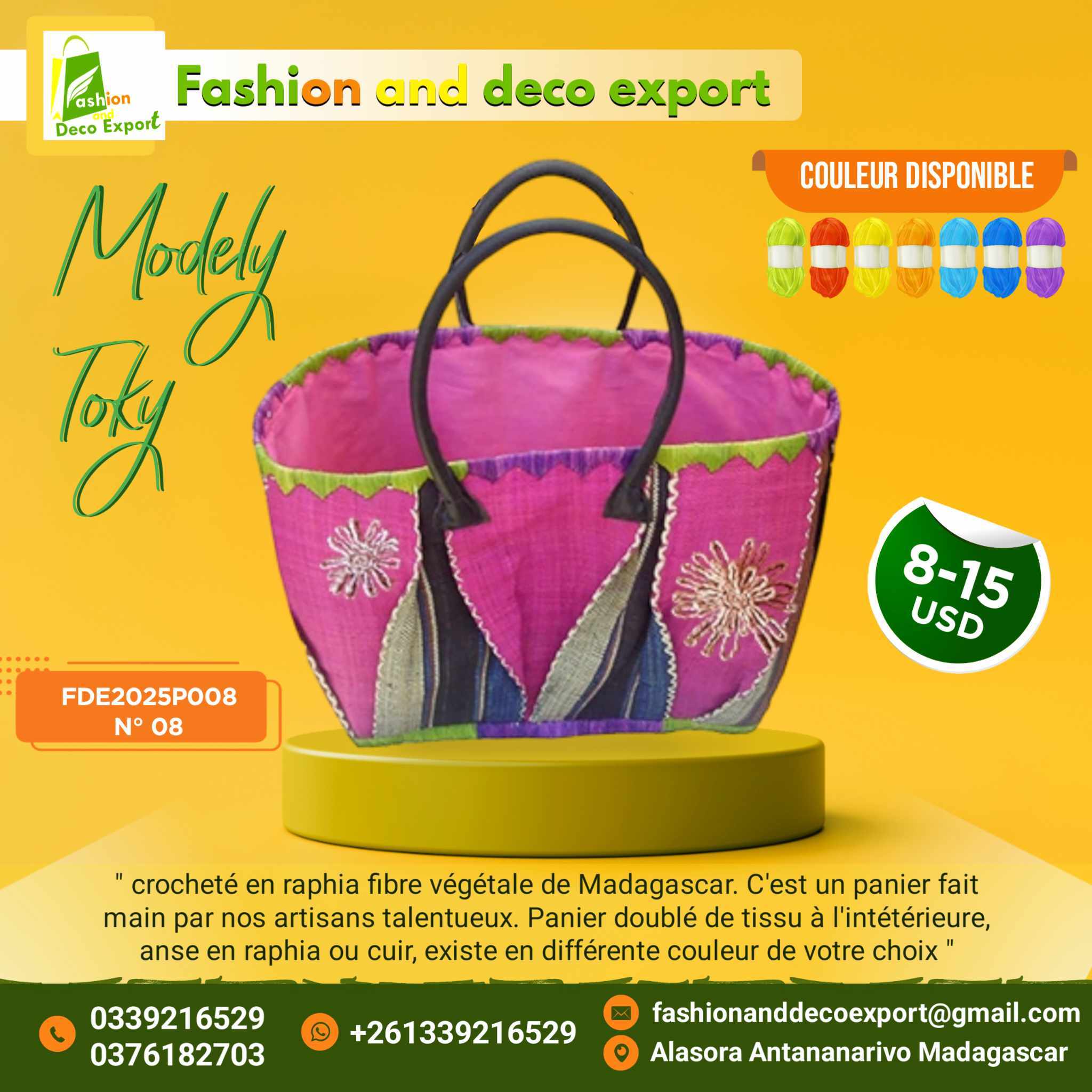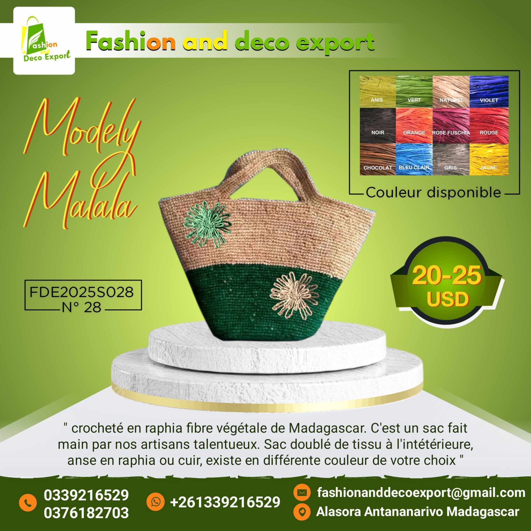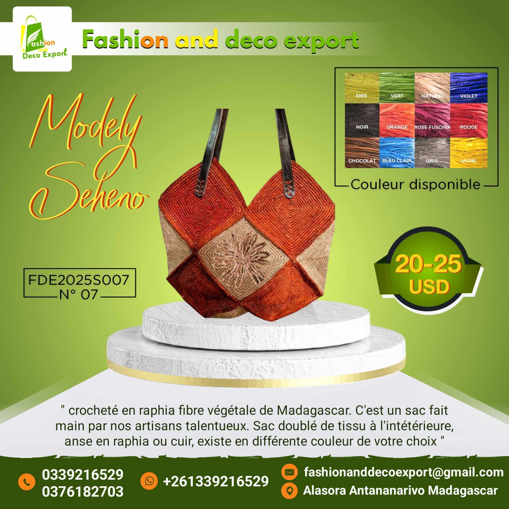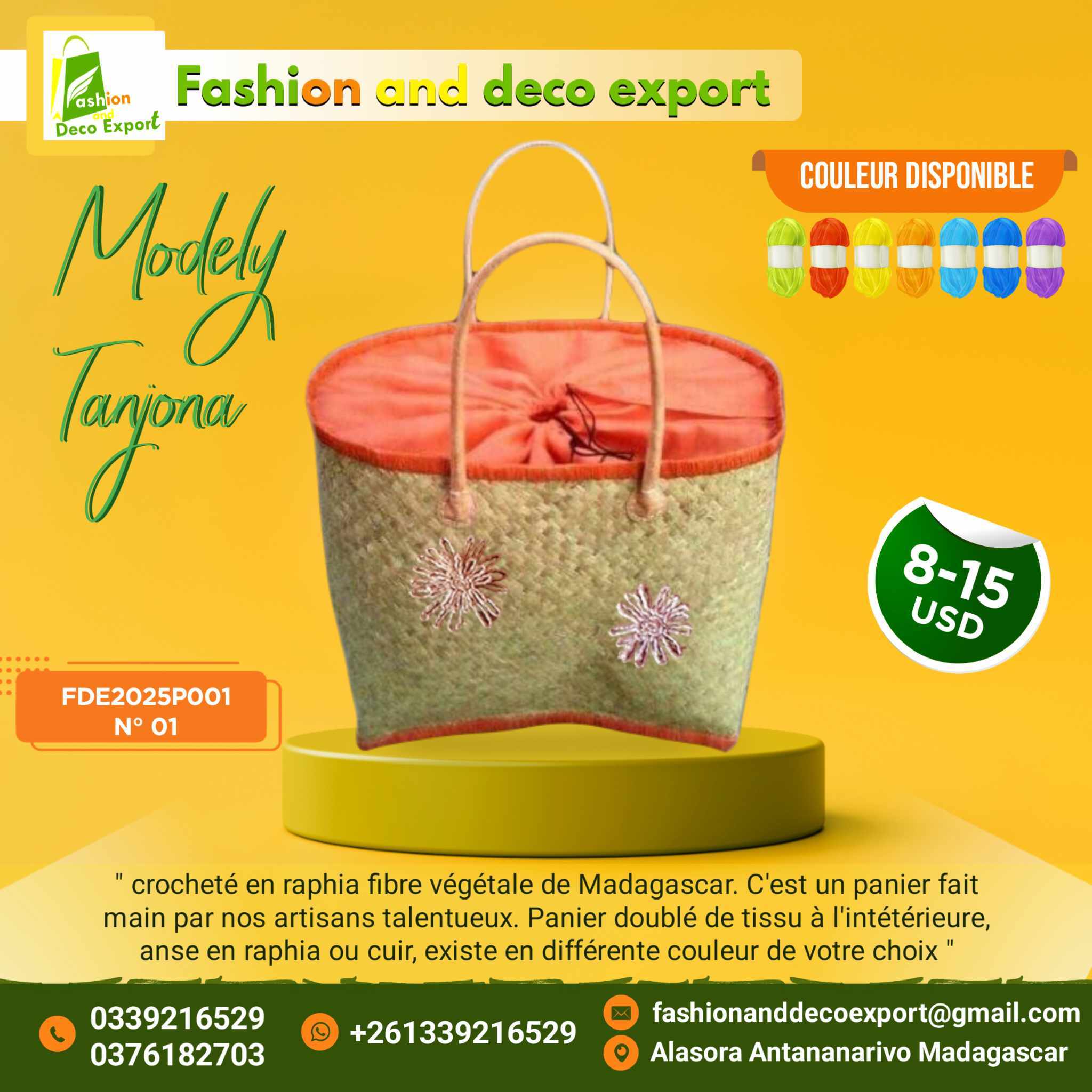 Nous sommes une grande famille des artisans dans la ville d’Antananarivo, et aux alentours . Nous faisons de l’exportation depuis 2013. Nous commençons avec une commande en conteneur avec notre client en ISRAEL, ensuite en Italie, en France, En Espagne, USA, LUXUMBOURG.
